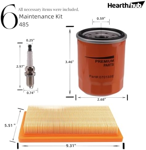 The 6485 Maintenance Kit comes complete with an oil filter, air filter, two spark plugs, a funnel, rubber gloves, and a cleaning cloth. This pre-configured installation kit eliminates the need for multiple purchases, saving you time and providing peace of mind.